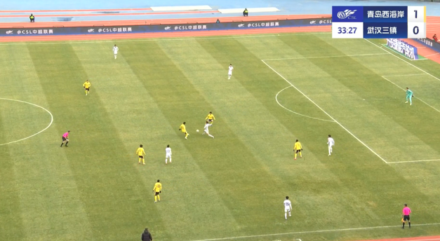 上半場補(bǔ)時(shí)3分鐘,青島西海岸1-0武漢三鎮(zhèn)。