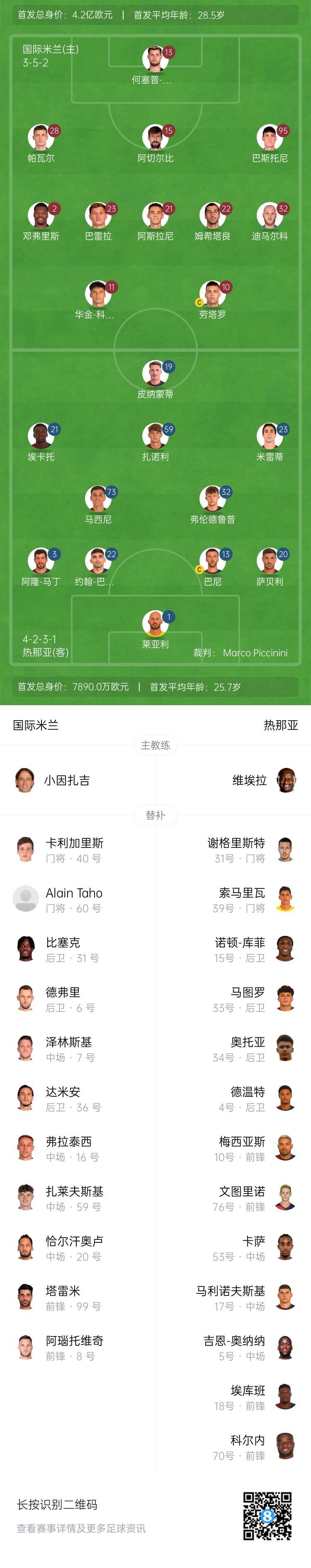 2月23日訊 意甲第26輪,國米主場(chǎng)對(duì)陣熱那亞。賽前,官方公布了本場(chǎng)的首發(fā)名單。