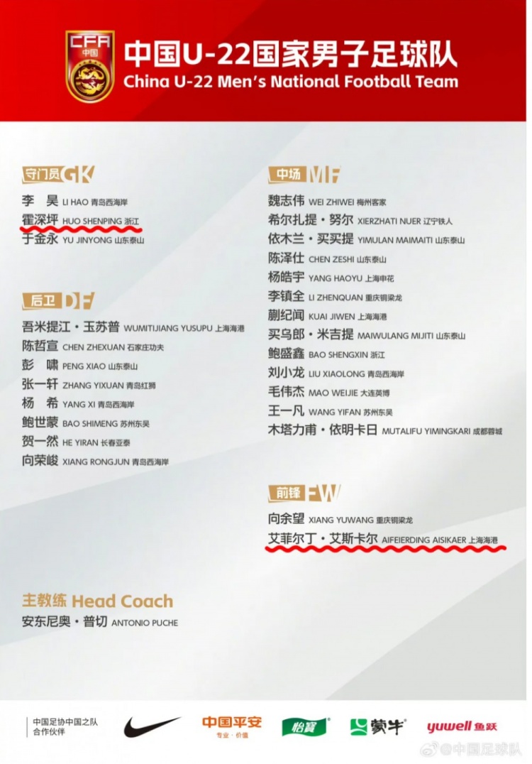 3月3日,中國足協(xié)公布U22國足2025年第一期集訓(xùn)名單,恒大足校培養(yǎng)球員霍深坪、艾菲爾丁入選。為備戰(zhàn)2026年U23亞洲杯及名古屋亞運(yùn)會(huì),隊(duì)伍定于2025年3月5日至26日赴江蘇省蘇州市、鹽城市組織集訓(xùn)并參加國際足球邀請賽。