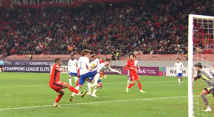 根據賽后鏡頭可以看到,韓國籍主裁金鐘赫向海港球員解釋此球未判的理由是,球先擊中了橫濱球員的大腿,才反彈到手上,因此按照新規(guī)不會判手球。