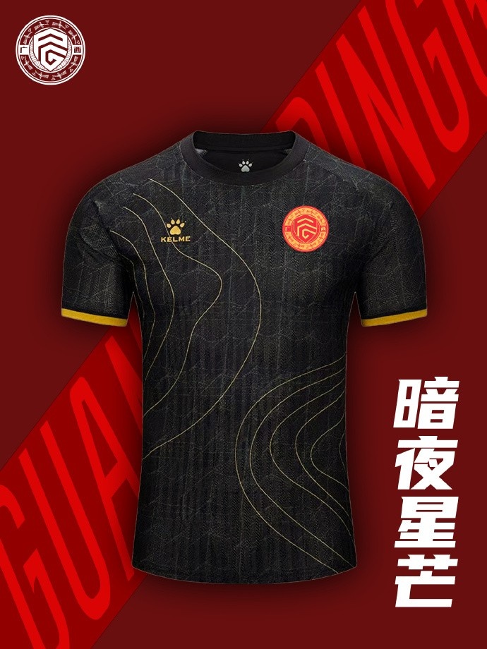 第二客場球衣源自廣西黑衣壯的族群標(biāo)記,黑色代表著力量與神秘,亦預(yù)示著球隊(duì)在新賽季中將如黑夜中的捕手,以冷靜的頭腦和堅(jiān)強(qiáng)的意志,在關(guān)鍵時(shí)刻給予對手致命一擊。胸前的金色線條既是喀斯特奇峰的暗號,亦是龍脊梯田優(yōu)美曲線的化身,暗色底紋如球網(wǎng)交織,象征著球隊(duì)在纏斗中迸發(fā)出無窮的力量,無論何時(shí)何地,都將以奮力一搏的姿態(tài)奪取最終的勝利!