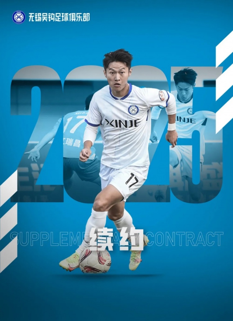 我們?cè)诖肃嵵匦?,?jīng)雙方協(xié)商一致,無(wú)錫吳鉤足球俱樂(lè)部與球員胡升嘉完成續(xù)約。2025賽季,他將繼續(xù)為無(wú)錫而戰(zhàn)!