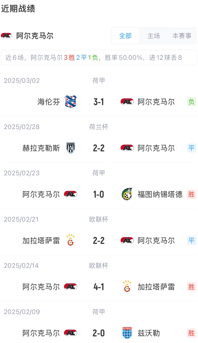 阿爾克馬爾首發(fā):1-奧烏蘇、16-每熊晟矢、3-古斯、5-曼努埃爾、18-穆勒-沃爾夫、8-穆勒-沃爾夫、28-布梅斯特、6-庫普梅納斯、21-波庫、9-帕洛特、23-拉赫多