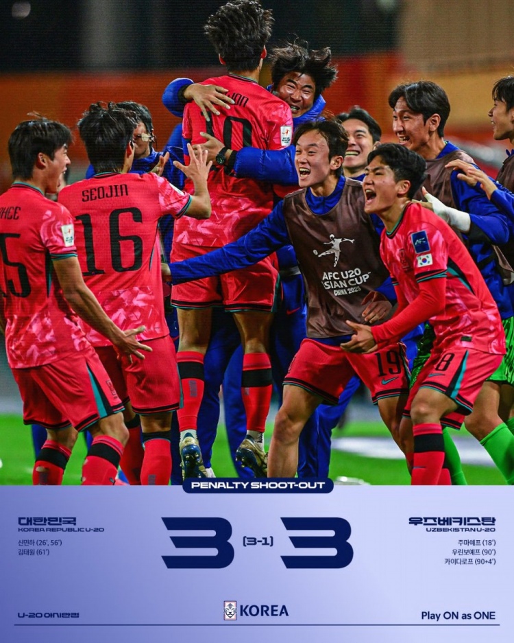 2月24日訊 U20亞洲杯1/4決賽,韓國(guó)U20和烏茲別克斯坦U20在常規(guī)時(shí)間戰(zhàn)成3-3,最終通過(guò)點(diǎn)球大戰(zhàn)韓國(guó)U20總比分6-4淘汰烏茲別克斯坦U20,獲得世青賽資格。